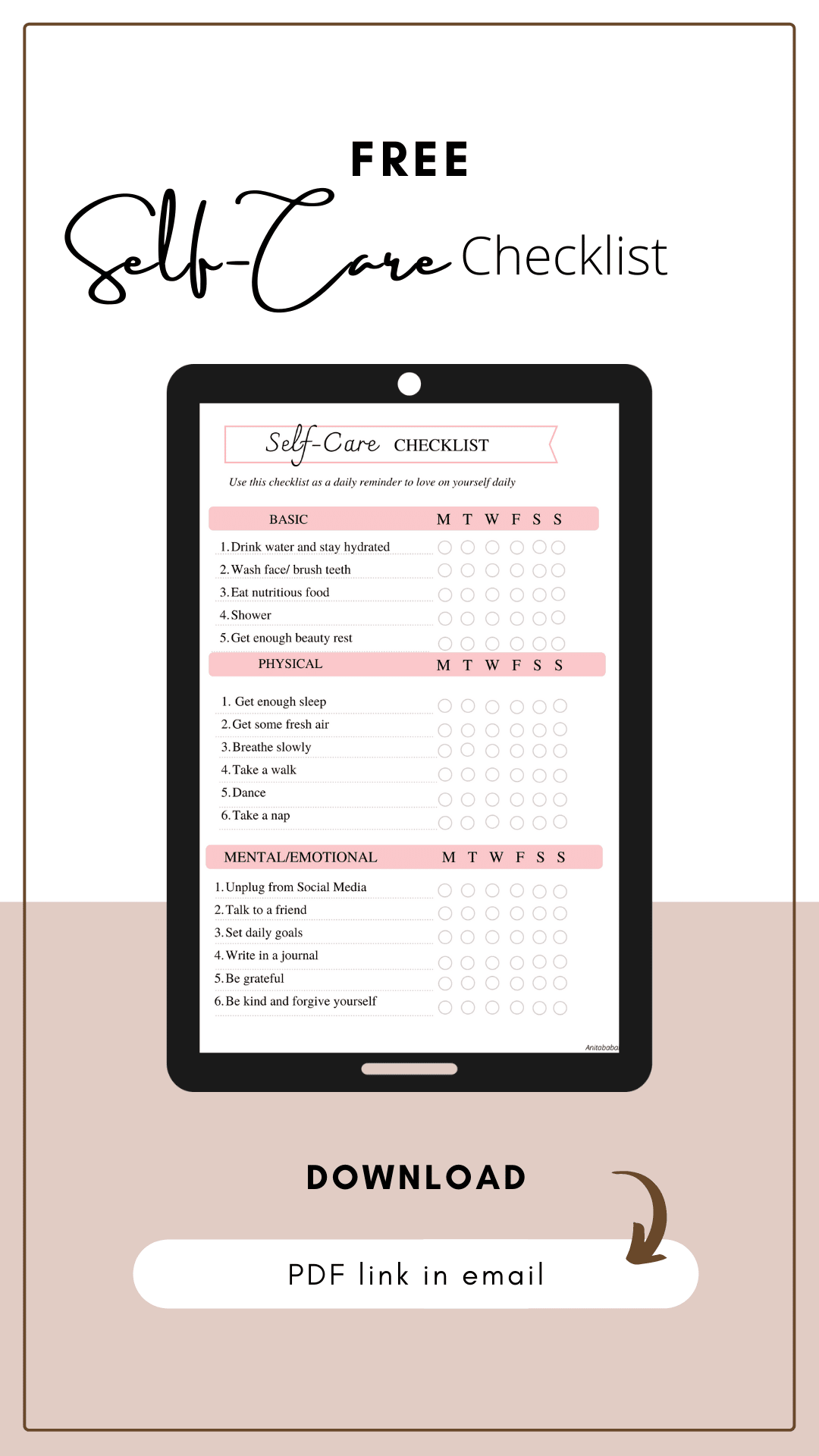 This Self-Care Checklist was designed as a way to hold you accountable to putting your self-care needs first.